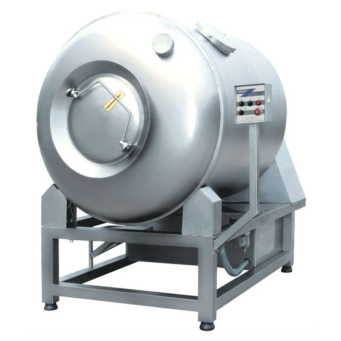 1. 采用轉動支架,臥式傾斜滾揉,具有更大的裝載能力和更方便地卸料性能。適用于西式香腸、火腿、培根、烤肉以及傳統中式禽類、醬鹵類、休閑類肉食品的腌制加工。